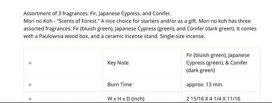 Morinokoh 60 sticks of Incense from Japan