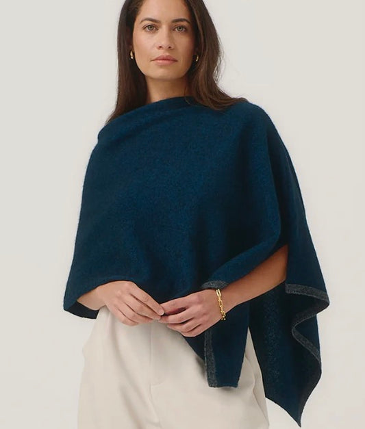 cropped cape poncho from new zealand in deep teal and charcoal trim