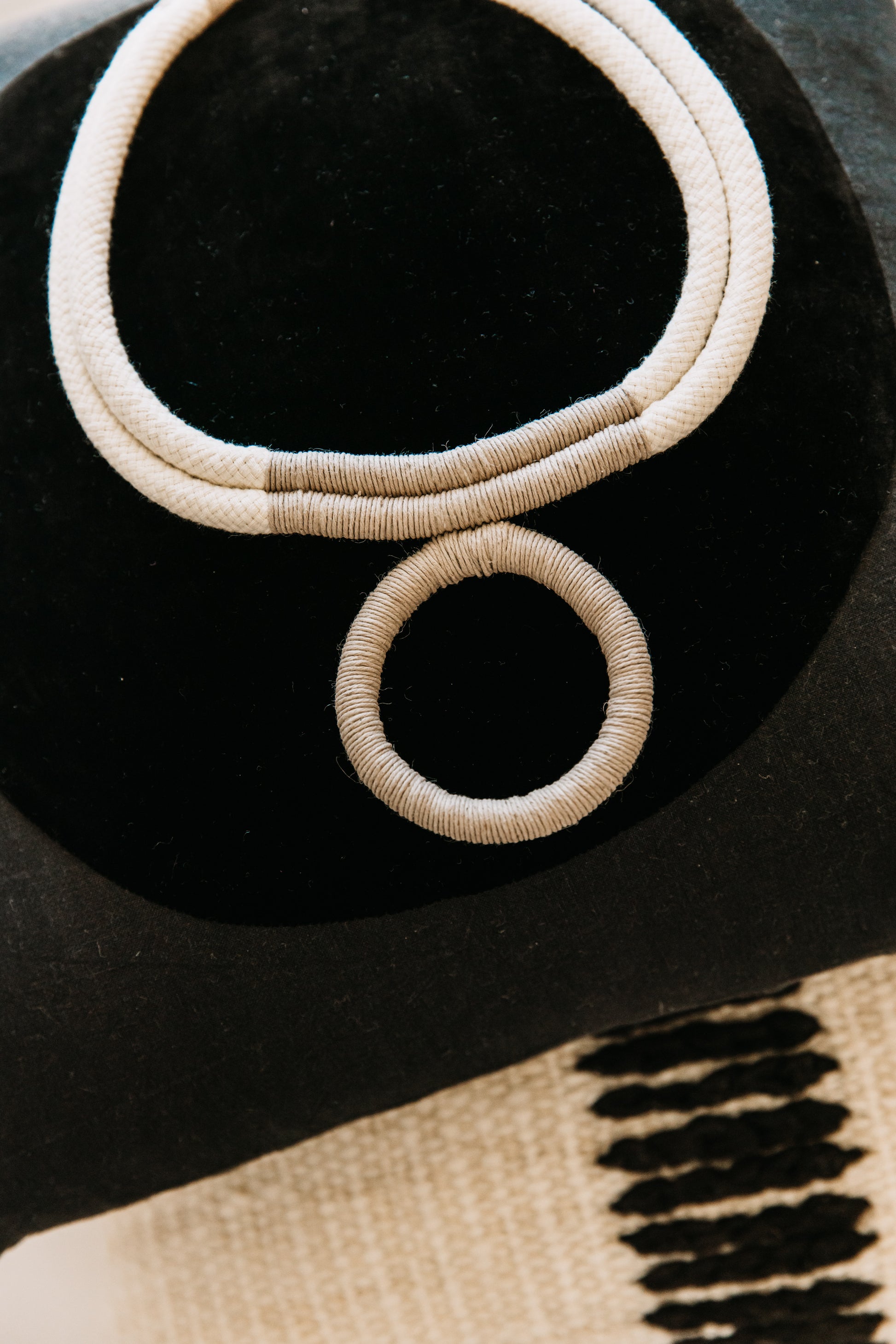 Handcrafted with zero to minimal waste, this handcrafted necklace is hand dyed and created from 100% cotton cord with hemp details and is finished with brass findings and oversized clasp.