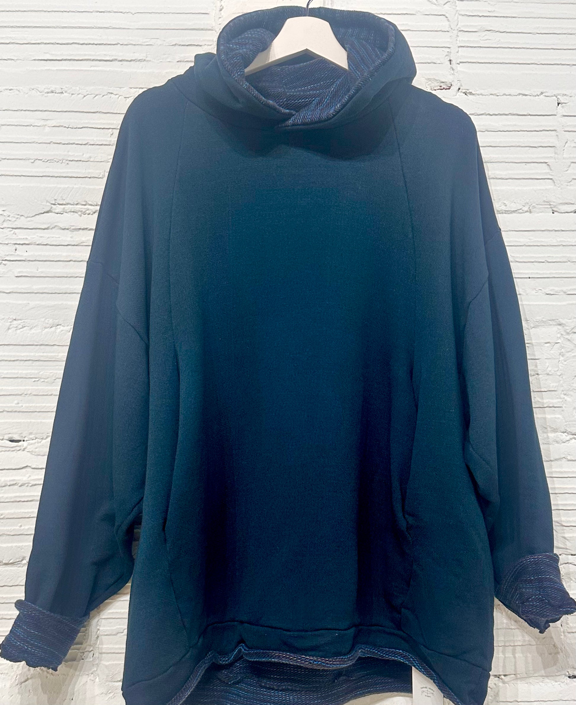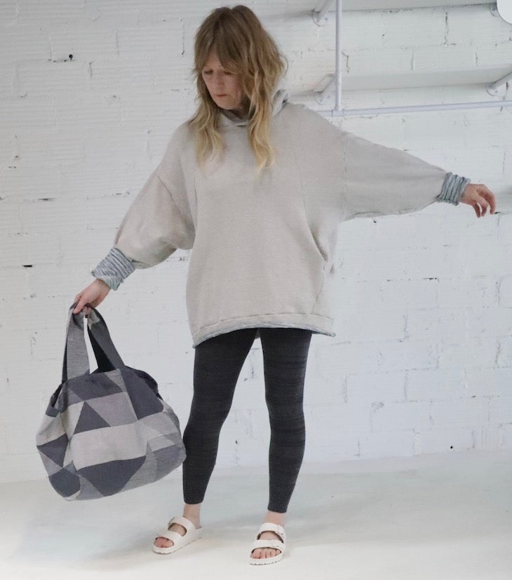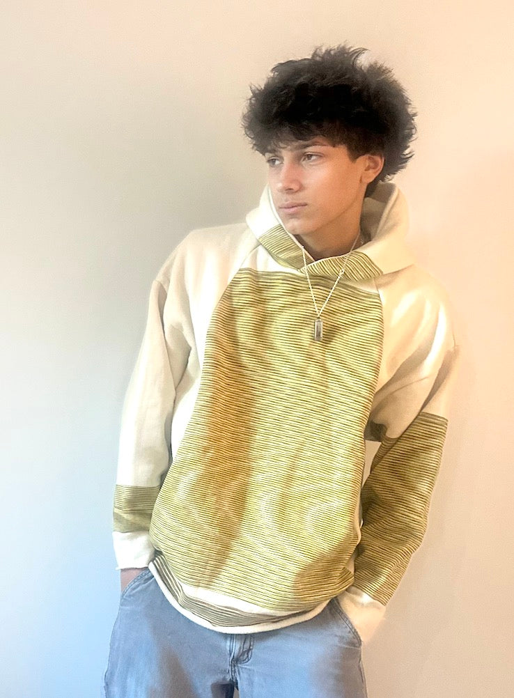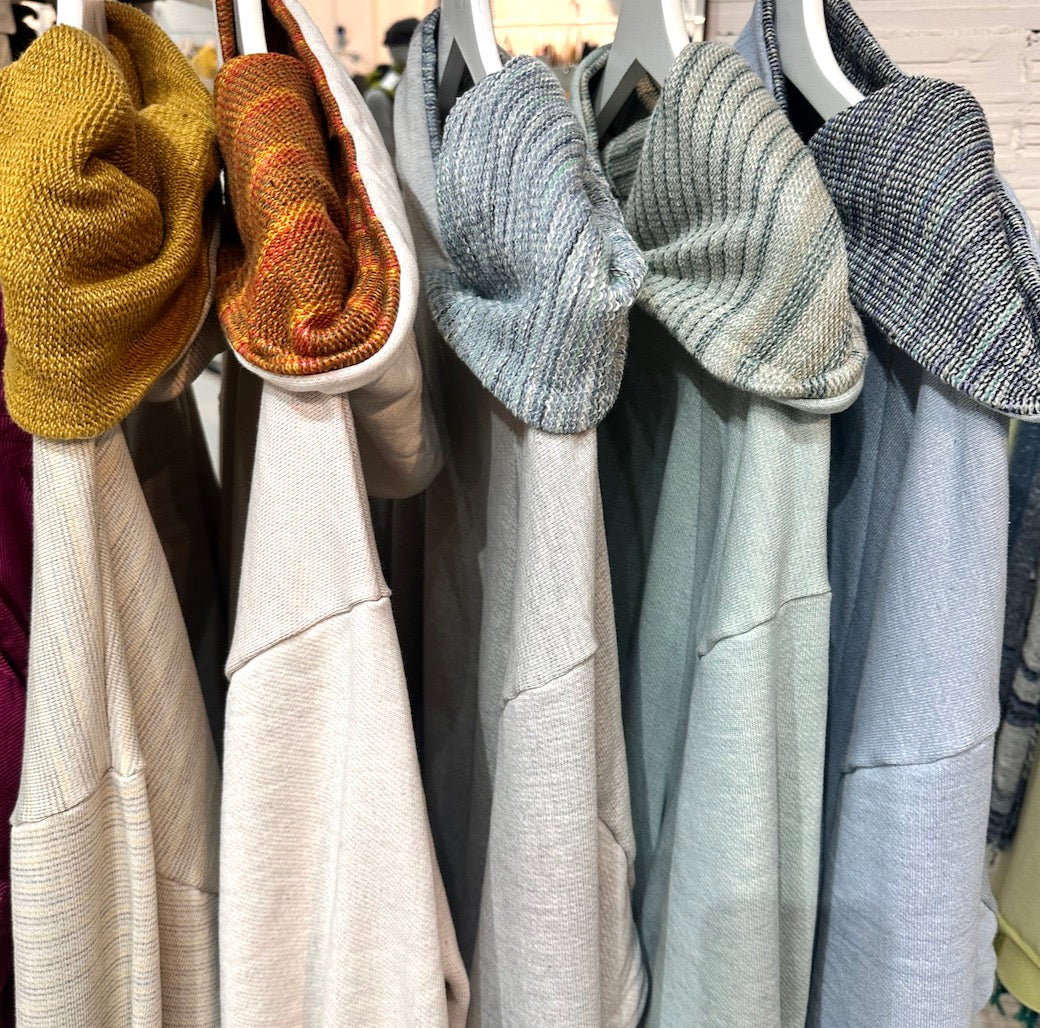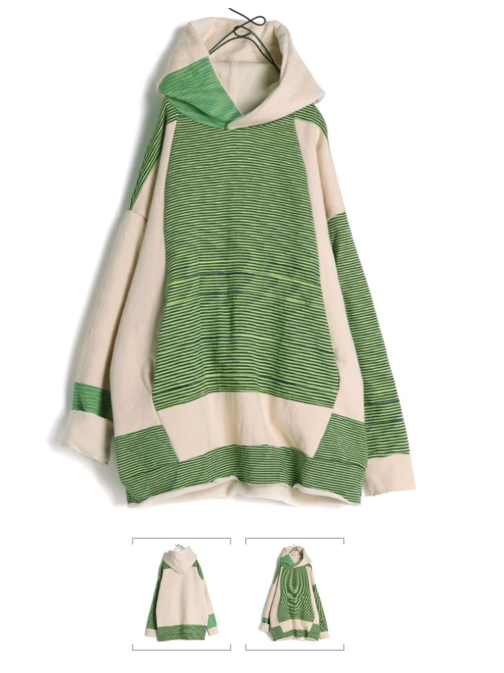One of a kind reversible cotton slub looped cotton pop over hoodie by Tamaki Niime. No two alike on the planet. Collect these soft favorites and fall in love. Gender Free. Relaxed and chill sizing...Two sizes. One and two.