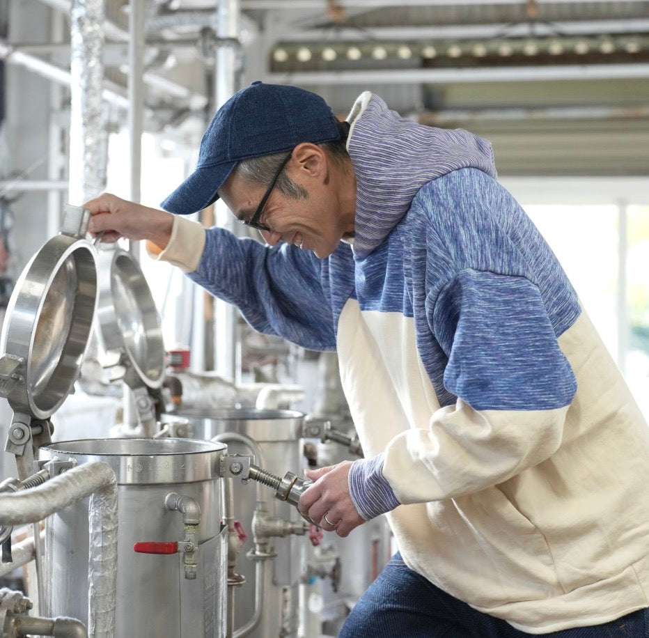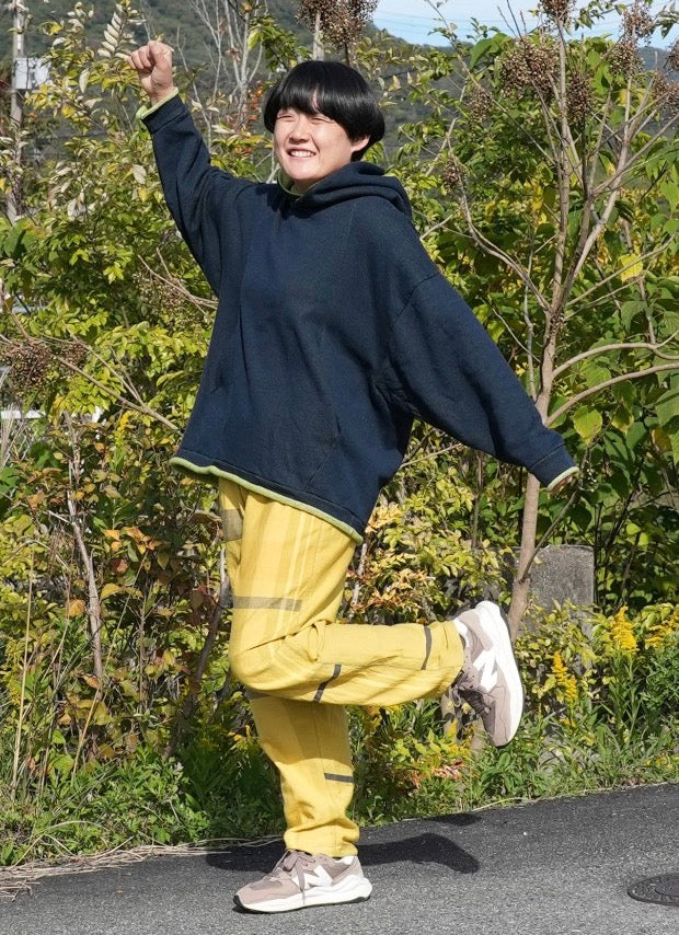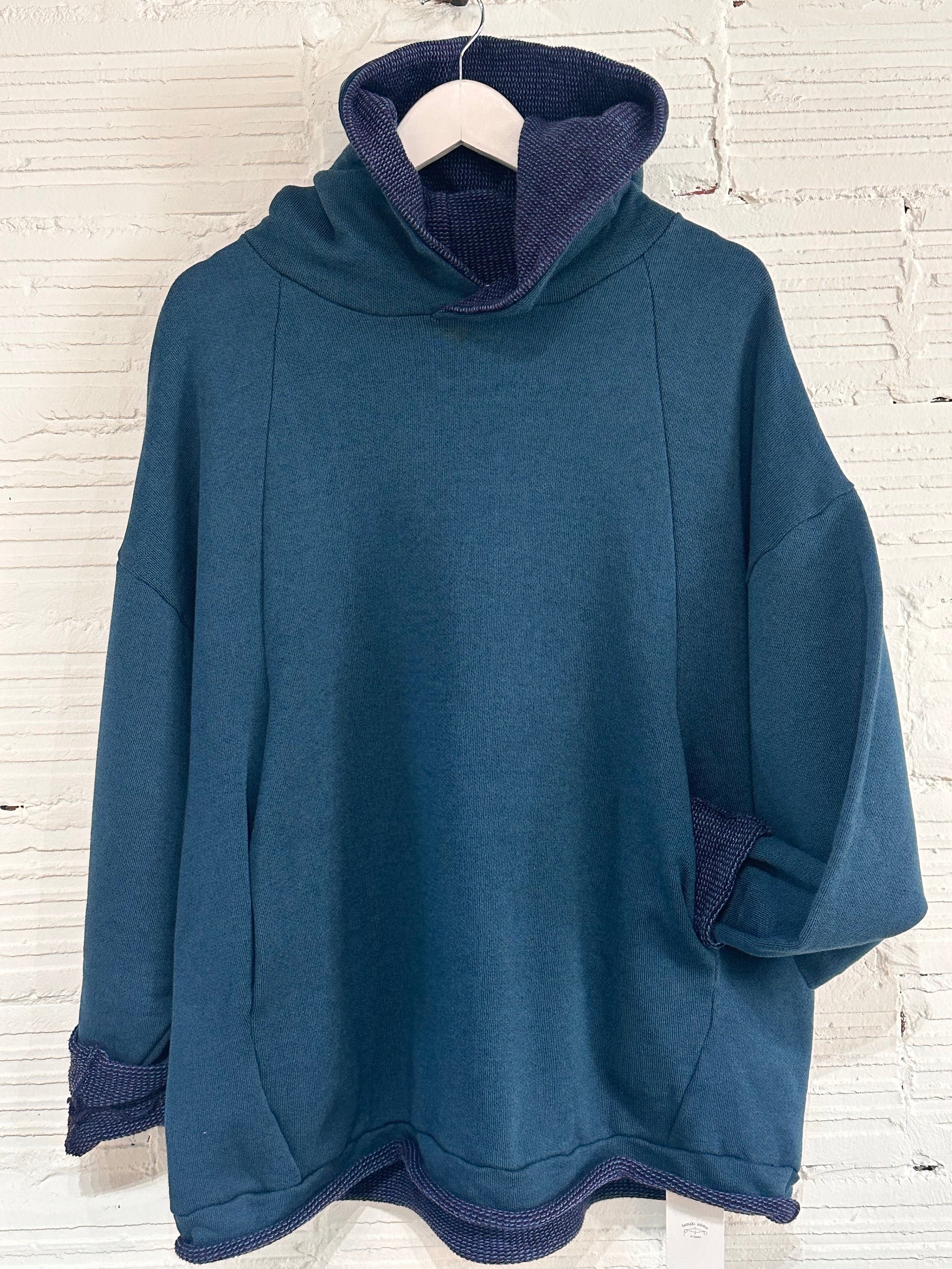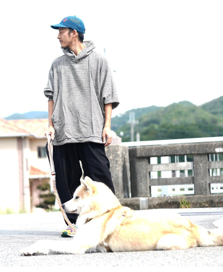 One of a kind reversible cotton slub looped cotton pop over hoodie by Tamaki Niime. No two alike on the planet. Collect these soft favorites and fall in love. Gender Free. Relaxed and chill sizing...Two sizes. One and two.