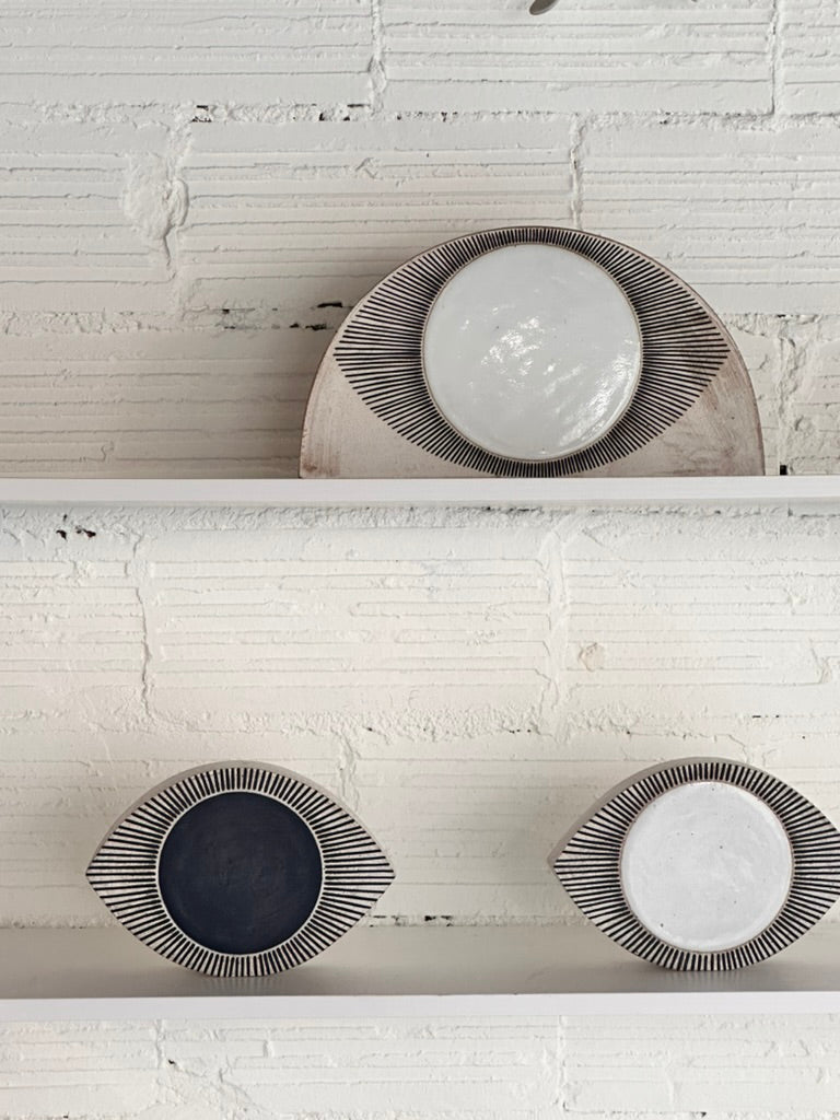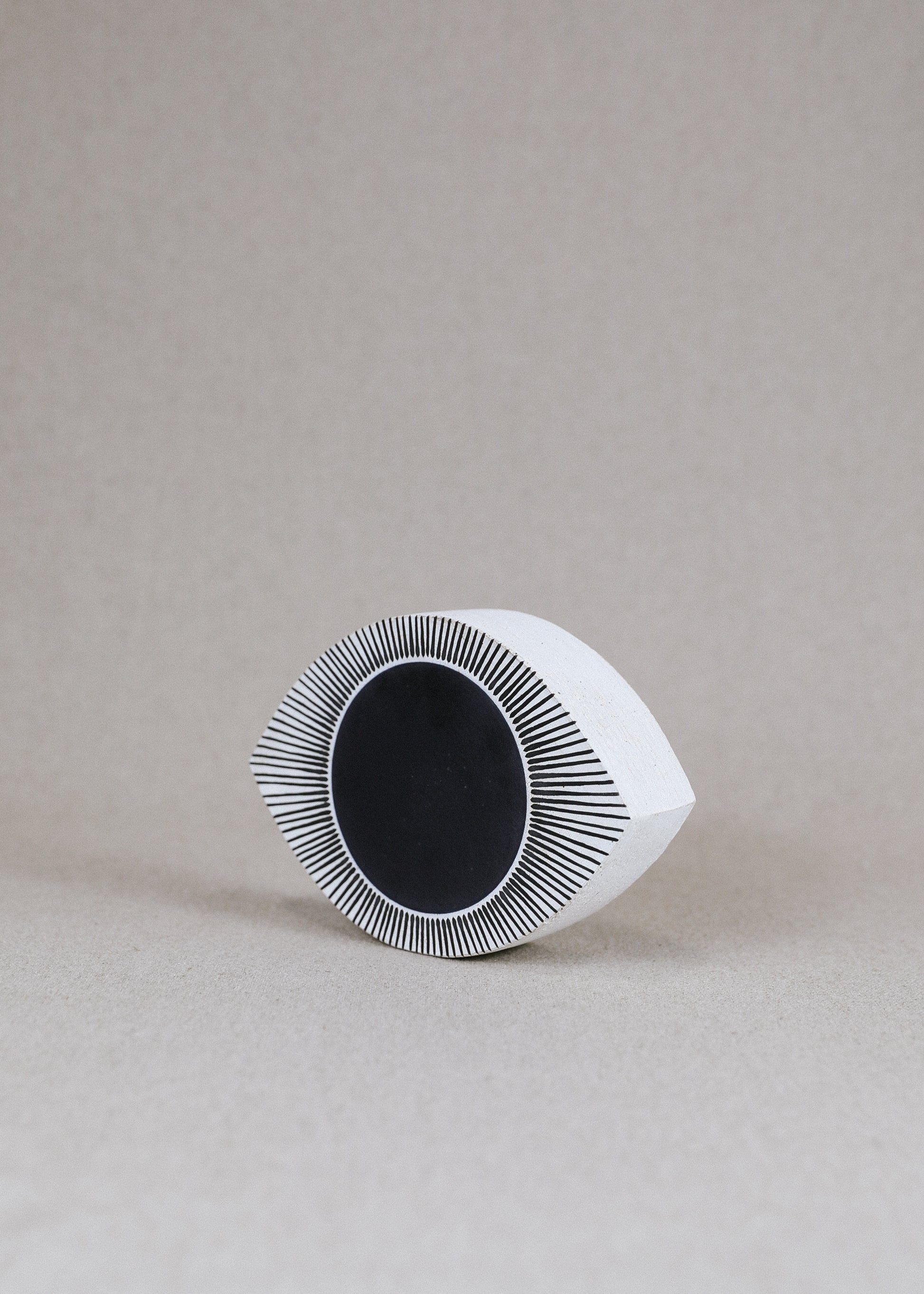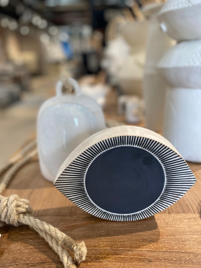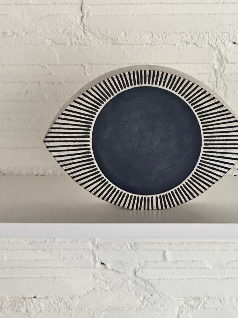 Eye portal is made of stoneware and hand painted with New Eye Indigo or White.