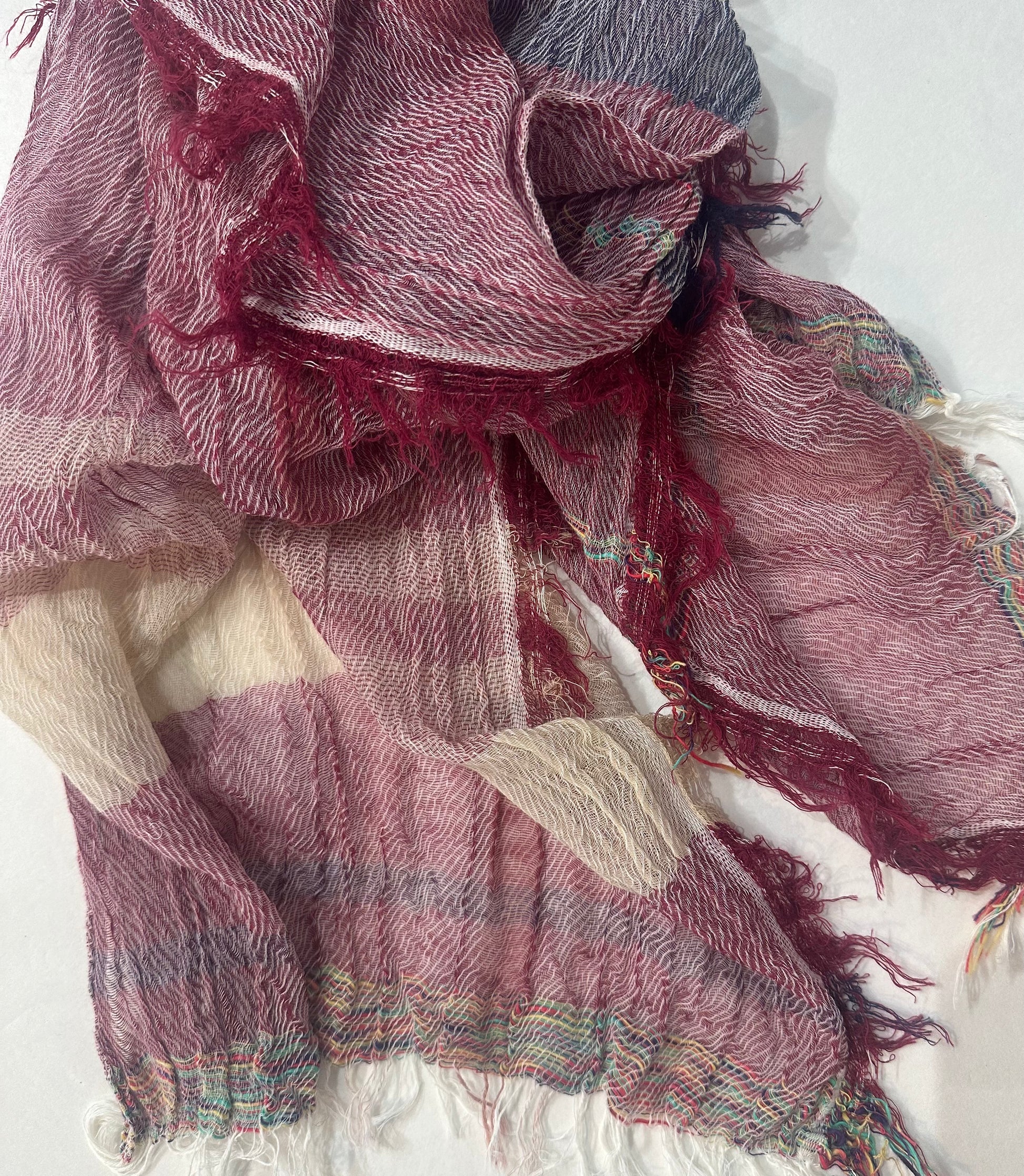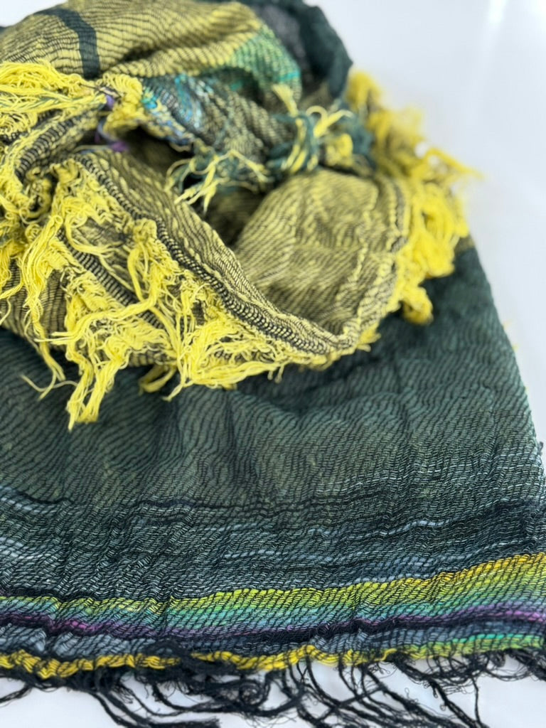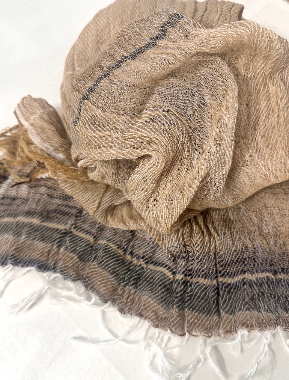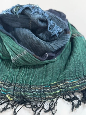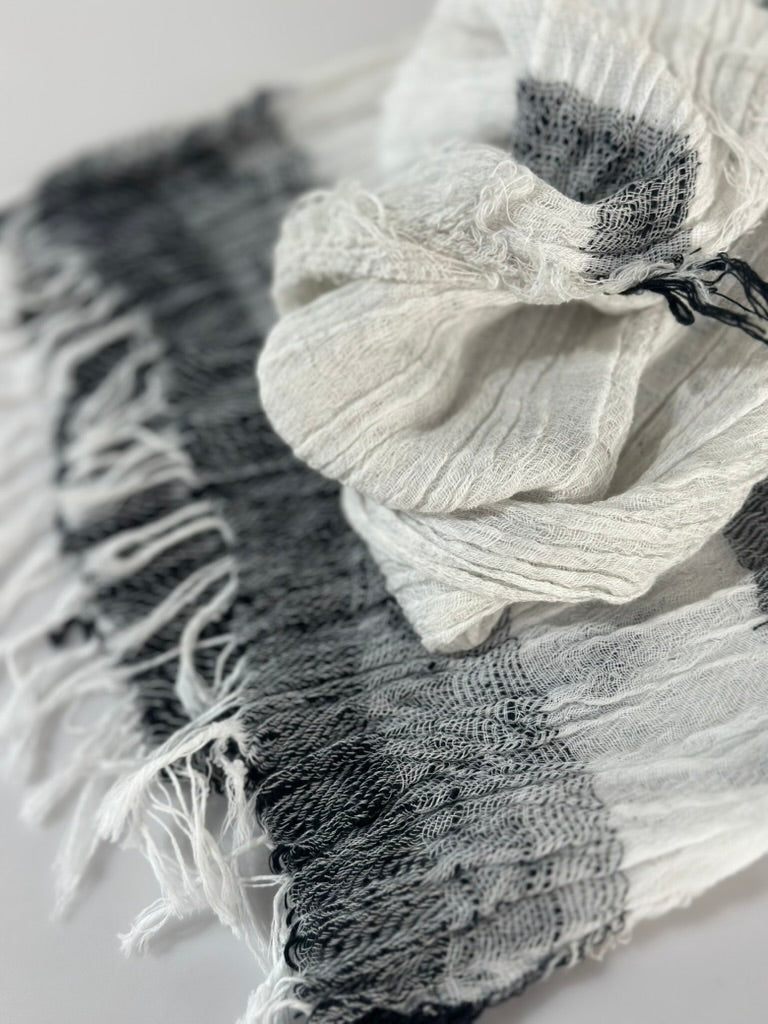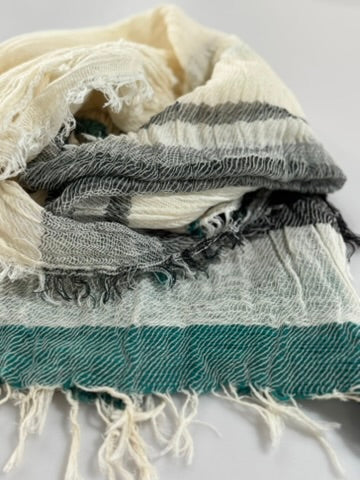 Light, billowy and gentle hand made scarves in Organic Cotton bliss. Soft feather weight -so glorious..blissful creations by Tamaki and her ever creative love staff in Nishiwaki. Each scarf is hand loomed with a celebration of color and pattern-rendering each creation as a one of a kind work of art. The scarves are washed and dried in the sunshine- flowing in the breeze and hewn of natural cotton fiber from the landscape of the Hyogo valley. Collect and celebrate these mellifluous expressions of love.
