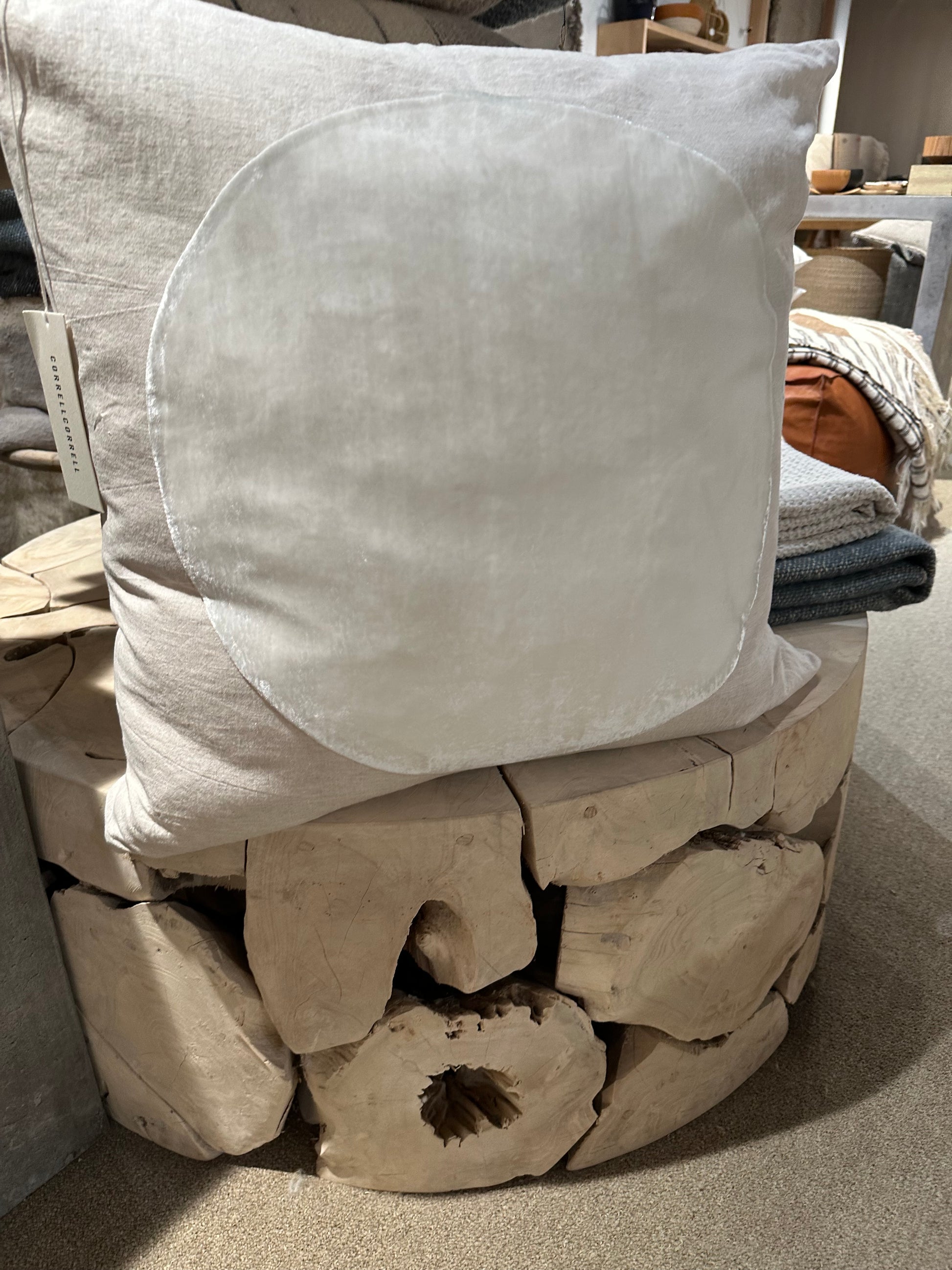 Hand dyed and made by Daphne Correll in Brooklyn, NY. Natural Linen and supple velvet. Down insert for comfort and ease of shaping. 2 sizes to choose from and compliment each other. Natural or Copper.