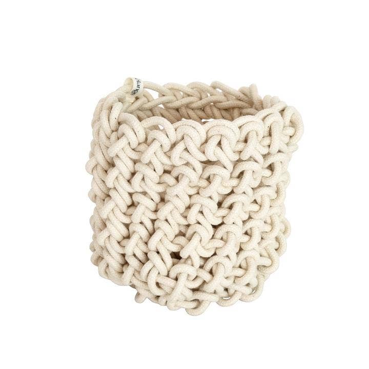 the MM team are passionate about creating opportunties and using talents and don’t let load shedding get us down. Instead, the team knuckled down and created the Loadshedding (Eskom) Planter! It's a product that is made without any electricity, and the team can sit on the sidewalk and enjoy the sunshine while being perfectly productive during load shedding. Adding this planter to the collection has also enabled the MM team to create extra work for women in the community. Loadshedding Planters are available in two sizes: small & medium. They are made from 100% cotton rope. The cotton is grown locally in South Africa by farmers who are members of the Better Cotton Initiative (BCI). Mia Melange Loadshedding Planters are handmade in Stellenbosch and variances may occur. Approximate Sizes: Small: D 5.5in x H 5in Medium: D 7.08in x H 6in