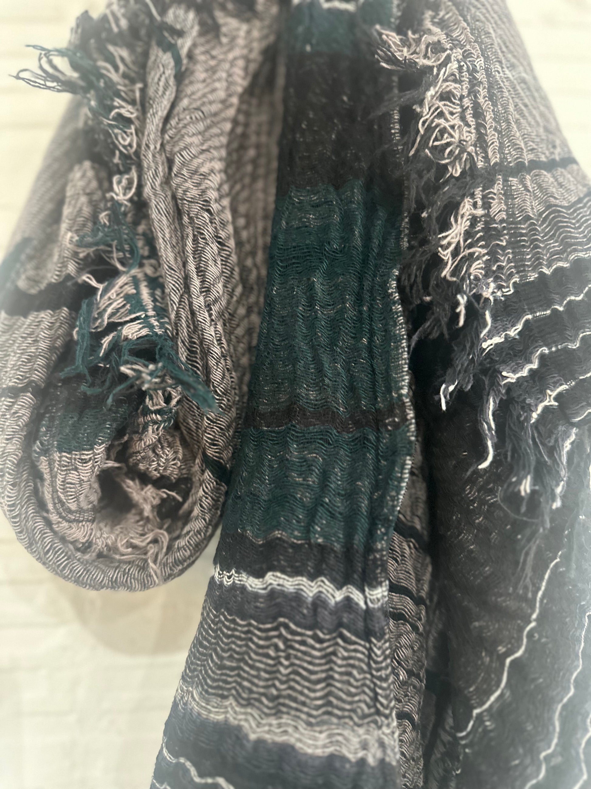 Organic cotton one of a kind scarves from Japan. Each side has a color story and unique pattern.