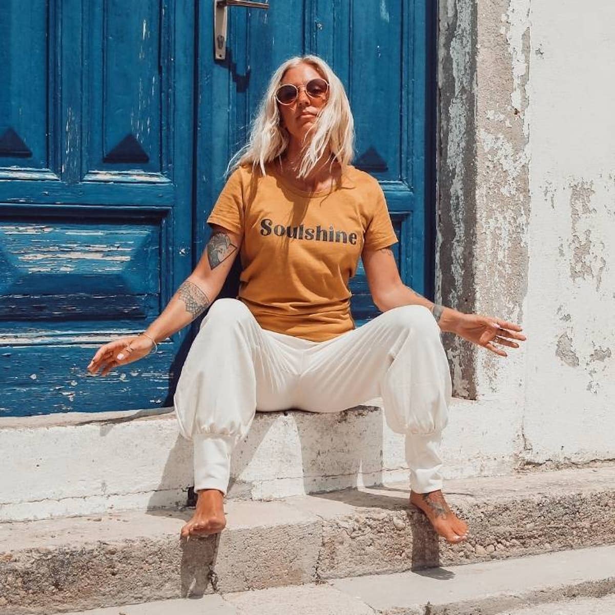 The trousers have a high waist with a smooth waistband to avoid creases around the hip/ buttocks. A long, slightly looser cuff at the bottom that can be wrinkled a little differently depending on how tall you are. No matter how it is wrinkled, it is just as stylish and makes the pants' fit unique for you and your body. At the waist is a nice little silver-colored badge with the text “Follow Your Soul” which gives an extra detail to the already stylish pants.