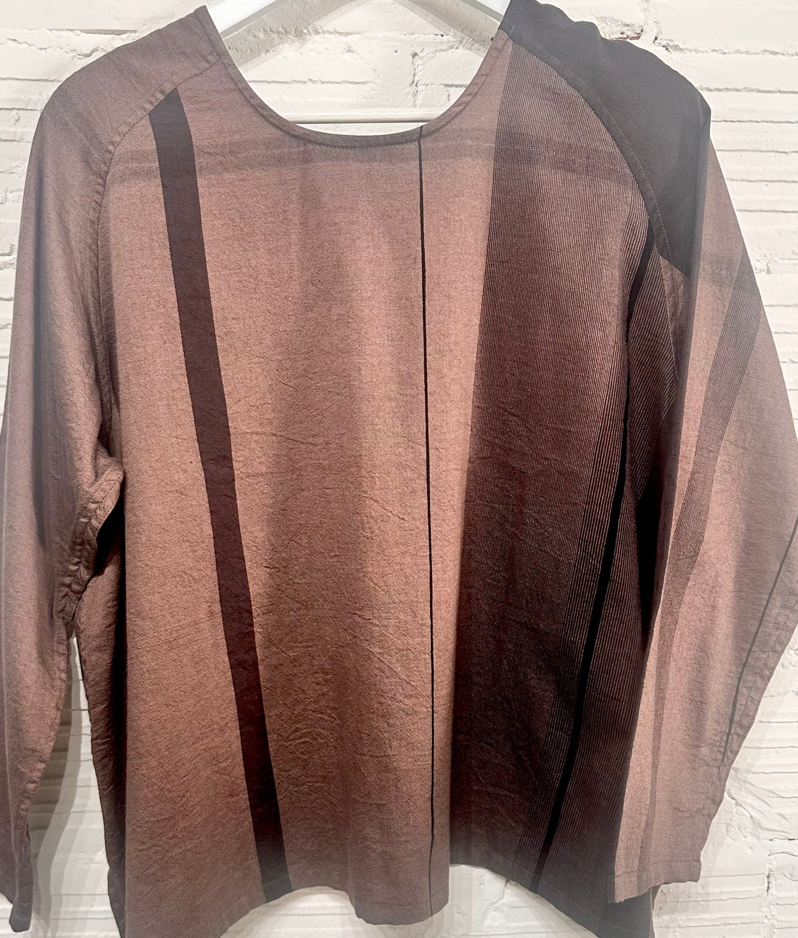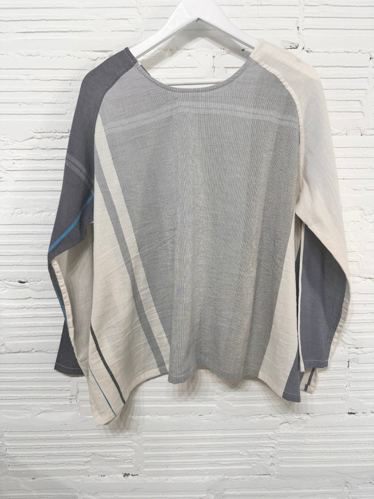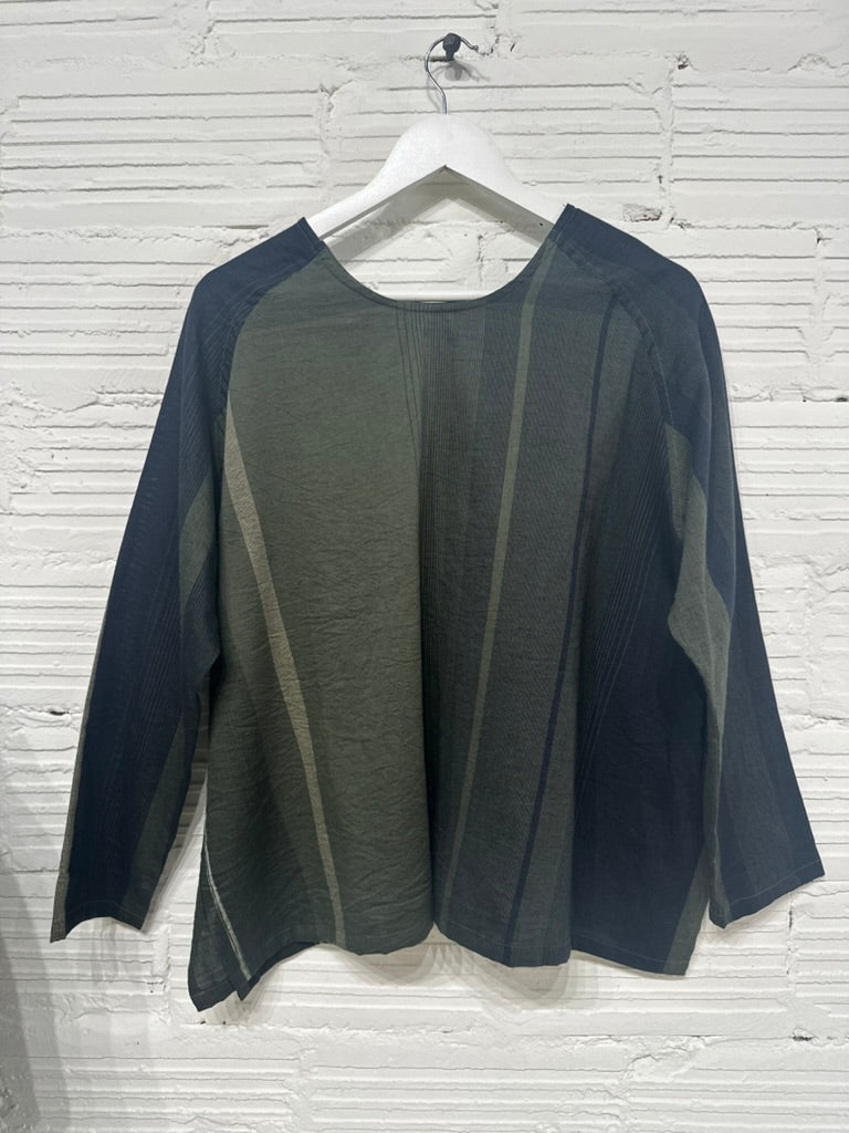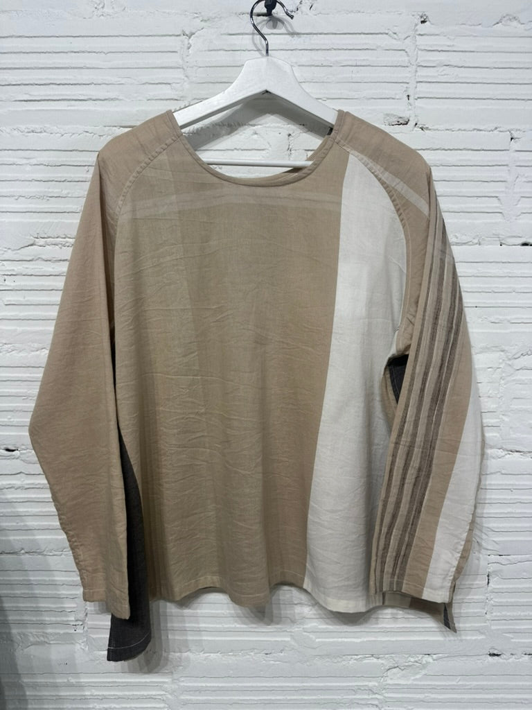 Organic featherweight cotton tops by the amazing Tamaki Niime. No two are ever done the same way. Bespoke creations that are wonderful quality and softness you can fall in love with. Simple silhouette makes it easy to match with anything. One size is right. Front and backs offer different patterns for fun.