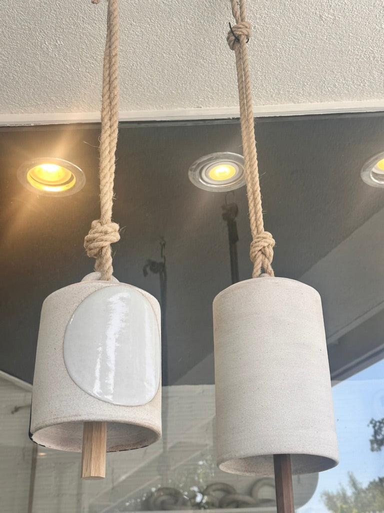 Tall wheel thrown white stoneware bell with a single painted star near signature stamps, or without