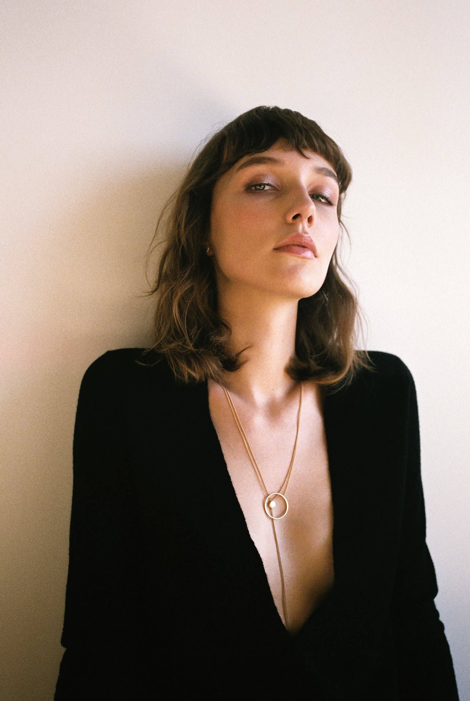 Tailored and structural, this plunging sweater has all the right lines. The neckline is finished with a clean selvedge edge. In full Milano rib, the surface is fine and smooth for a polished look.