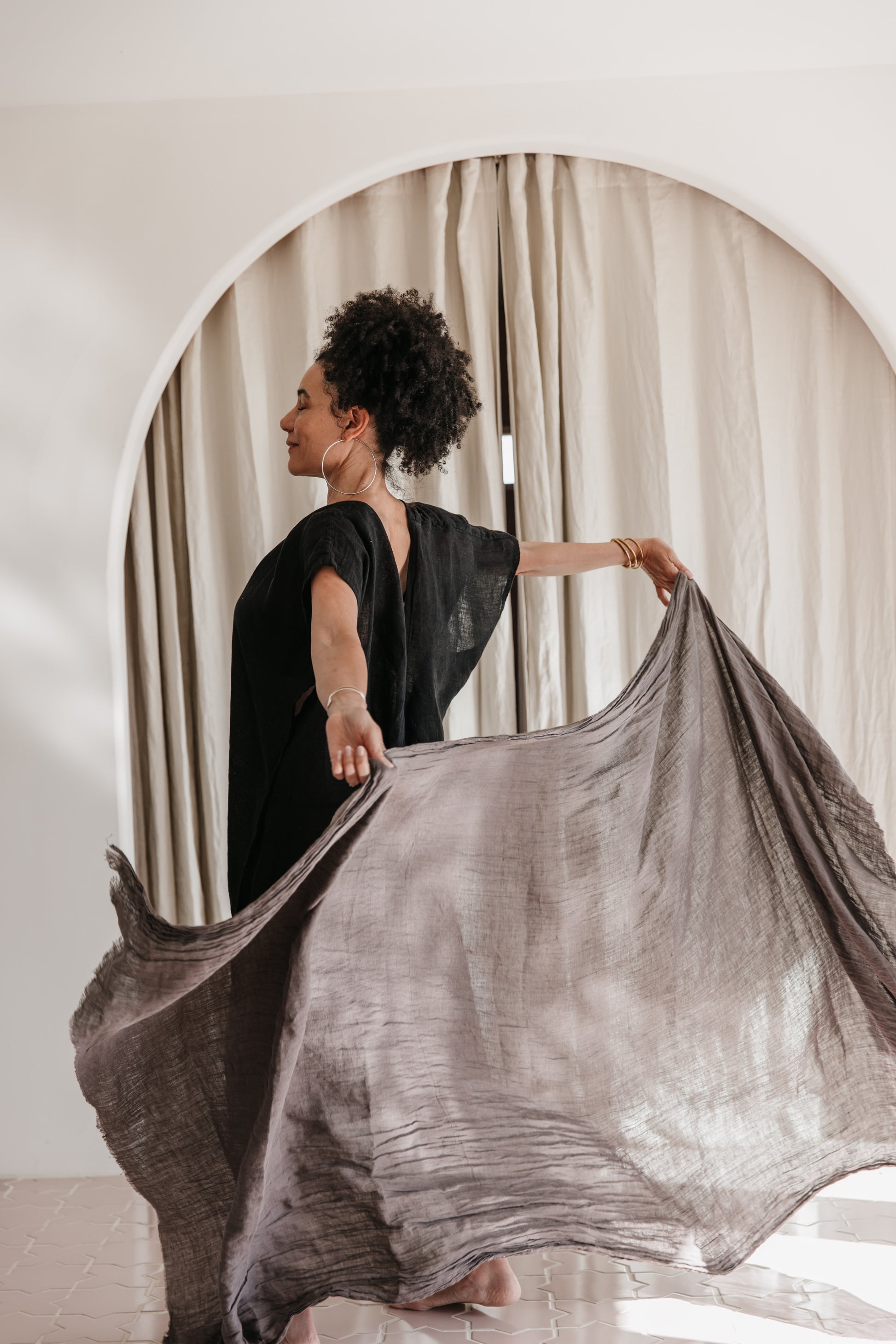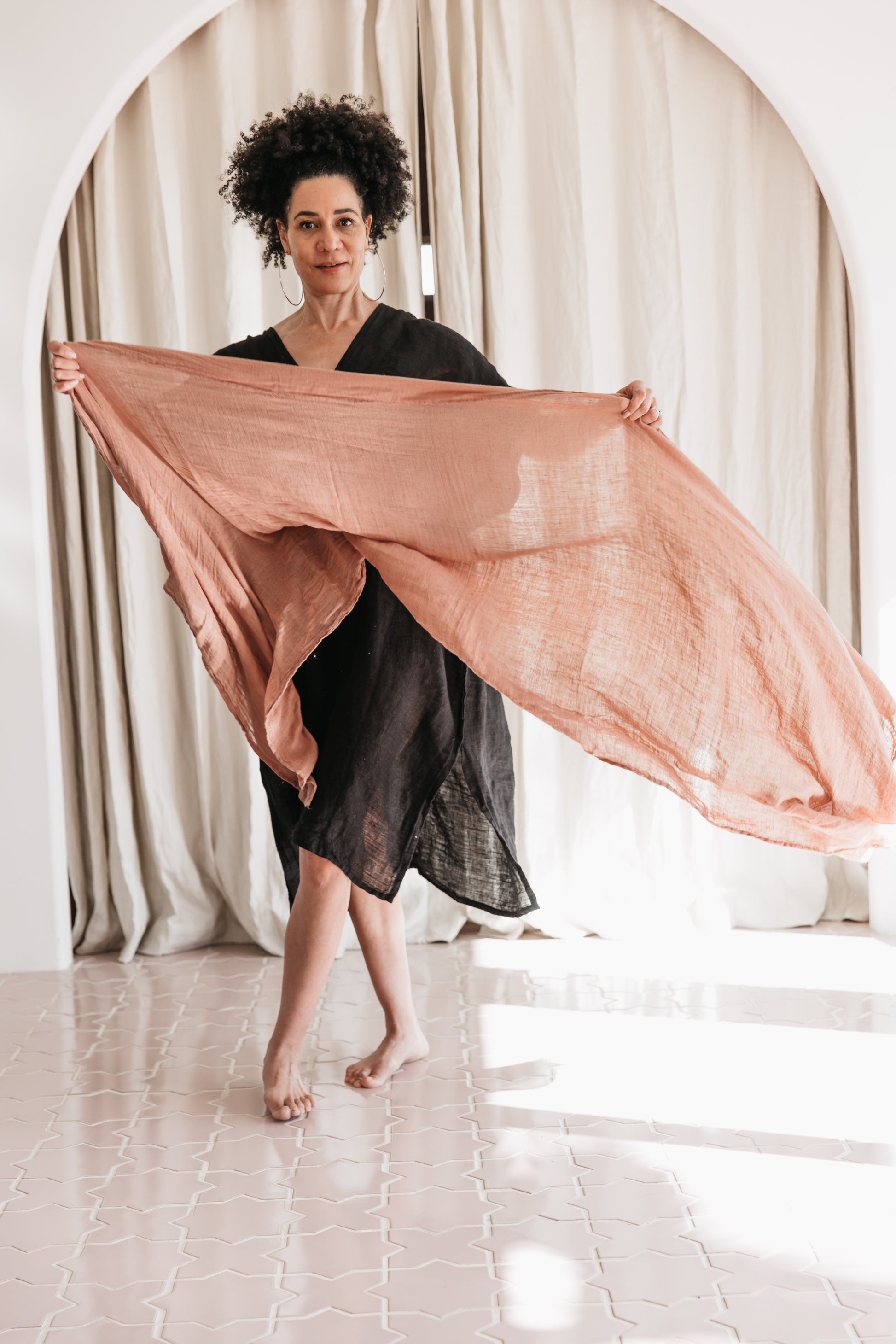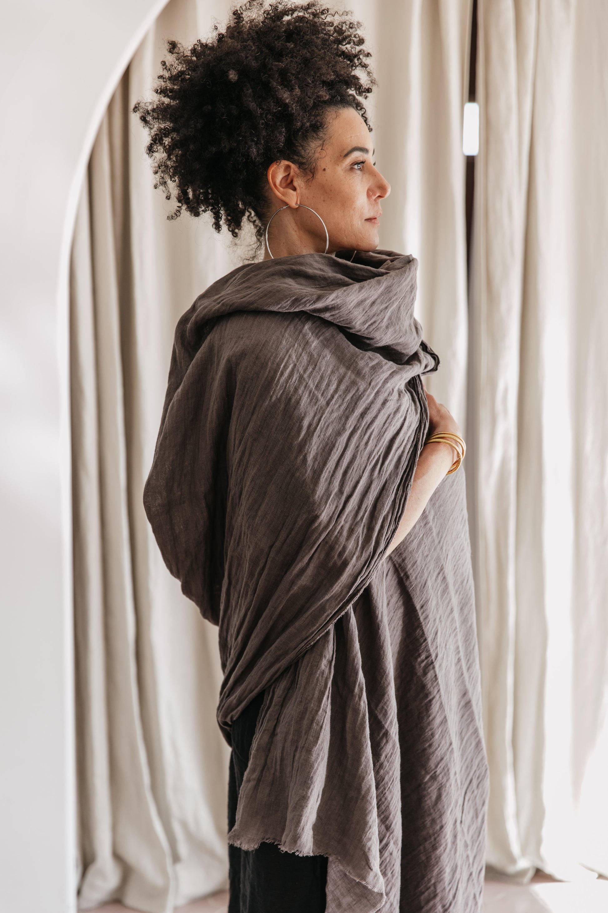 An essential all-season layering piece for body and home. Great for layering “outerwear” wrap or scarf worn over anything.